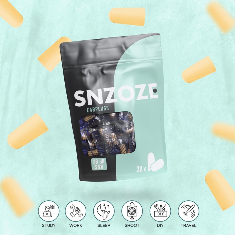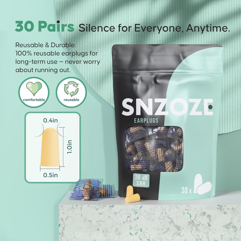 SNZOZE 30 Pairs Ultra Soft Foam Ear Plugs, Perfect for Sleeping, 38dB SNR, Individually Wrapped, One Size (Beige)