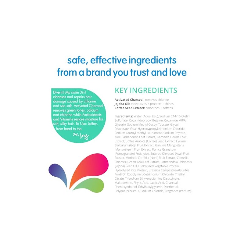 • No Nasty Ingredients: Apply our multi-use after swim shampoo, conditioner & wash with confidence; This kids shampoo & conditioner for swimmers is free of Parabens, Sulfates, Phthalates, Formaldehyde, Synthetic Colors or Dyes & Propylene Glycol
