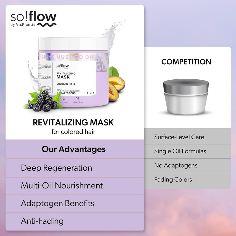 Transform your hair care routine with So!Flow Revitalizing Mask, a deep and luxurious treatment that not only preserves hair colour, but also nourishes, strengthens and protects from the inside.