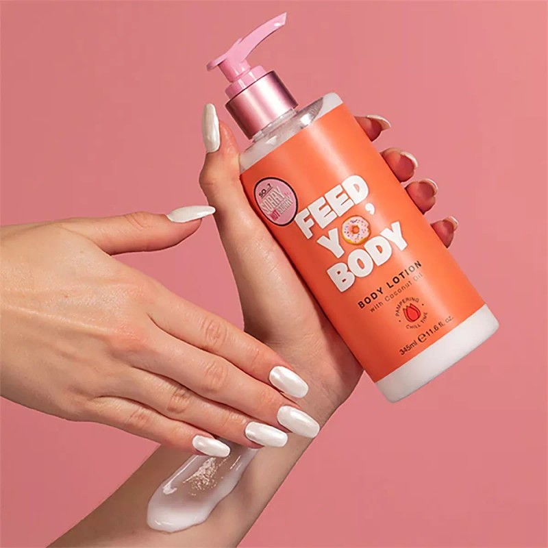 Body Lotion: Deja que tu piel se sienta satisfecha con SO…? Loción Sorry Not Sorry “Feed Yo’ Body”. Envuélvete en la infusión de aceite de coco y esencia de sandía para obtener la loción corporal nutritiva perfecta.