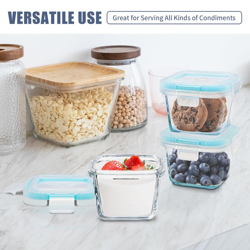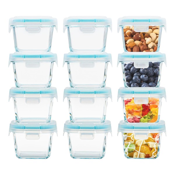 Small Glass Containers [12 Pack, 5oz] Reusable, Airtight, Leakproof Mini Food Storage Containers with Lids