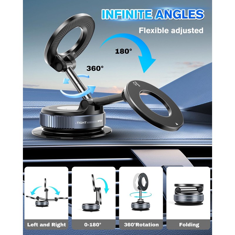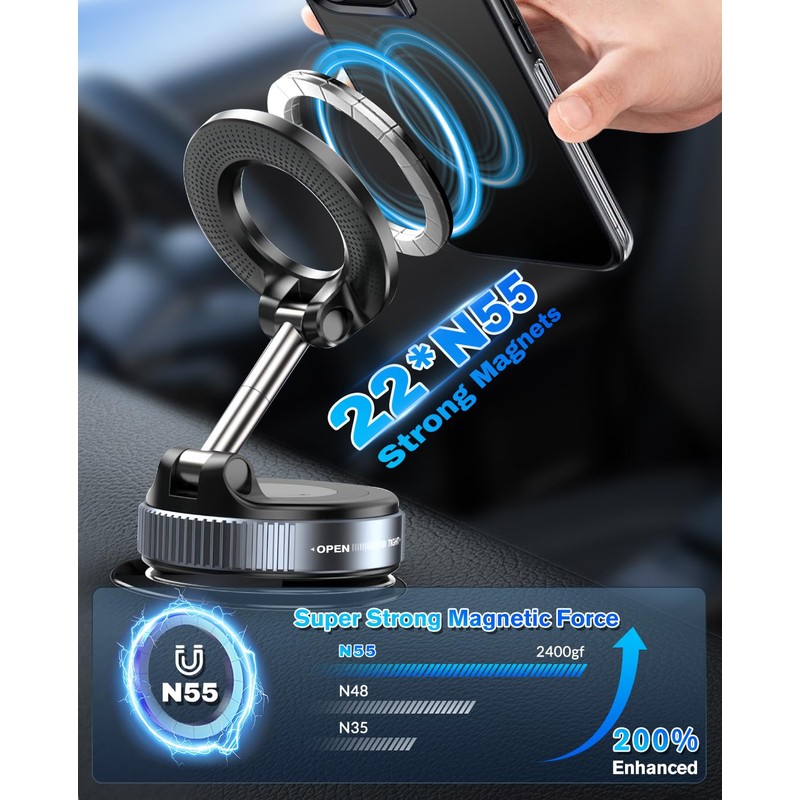 SOAMOEU Vacuum Suction Magnetic Phone Holder, 2025 Upgraded Magnetic Car Phone Mount for Magsafe, 360°Adjustable Foldable Portable Suction Cup Phone Holder for Cars/Gyms/Mirrors/Smooth Surface