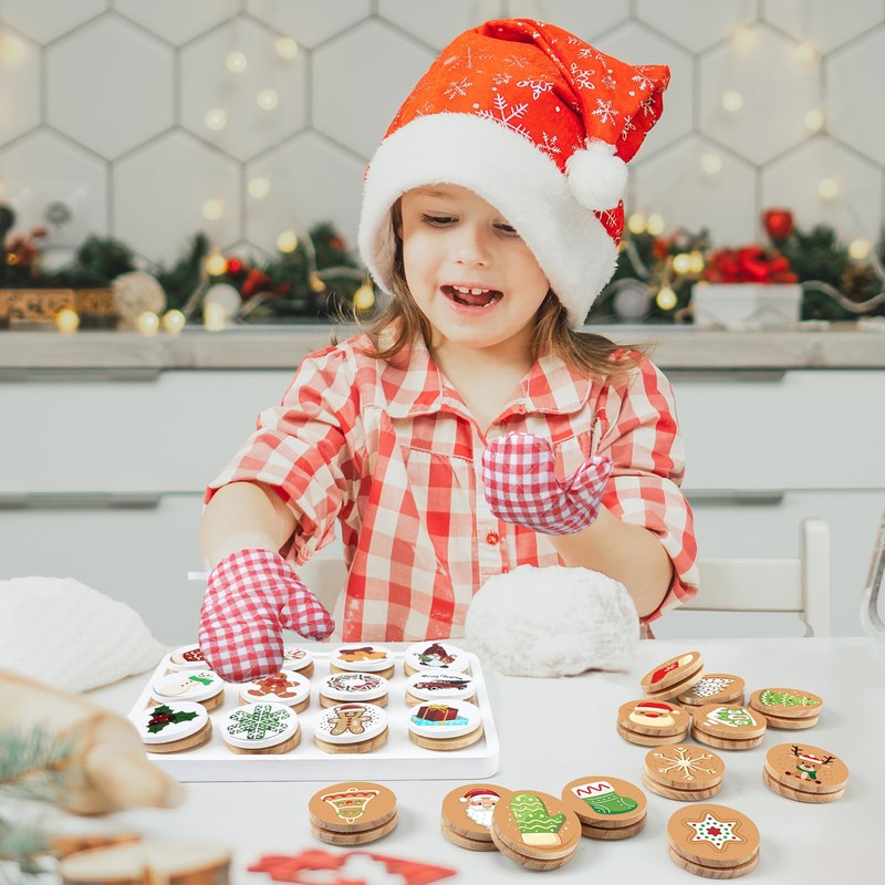 - Rich Cookie Play Food Set: slice and bake wooden cookie play food set contains a total of 24 Christmas cookies with 24 decorative toppings, 2 wooden pallets, 2 baking gloves, 2 wooden shovels, and 2 wooden knives, making it 2 complete kitchen set, you can engage with partners, allowing you to fully experience culinary fun