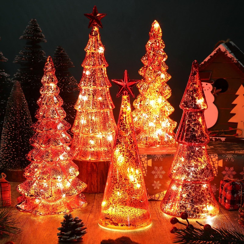 - Elegant Design: this lighted Christmas tree has 5 different styles, cute and special, the mercury glass structure gives each Christmas tree a reflective, shimmering surface, and the exquisite details add a touch of classic charm, making these trees a timeless addition to your Christmas collection