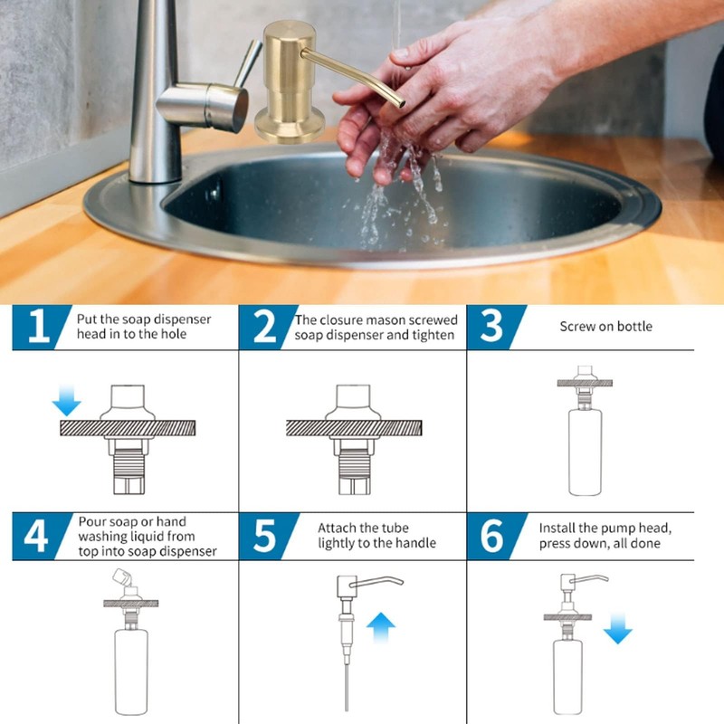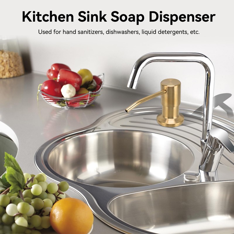 - 🛀 EASY TO PRESS TO USE: The gold sink soap dispensers are easy to press, bounce back shiny and have been tested on over 50,000 presses. Long-lasting performance, kitchen sink soap dispenser.