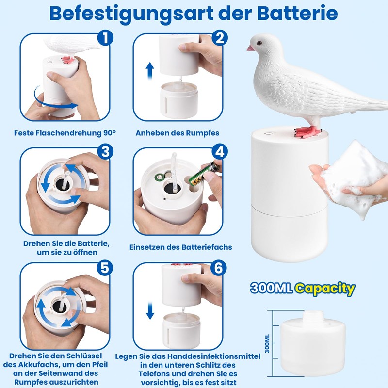 - Long-lasting performance: powered by 4 x AA batteries (not included), our pigeon soap dispenser can last up to 8 months in continuous operation. This ensures that you don't have to worry about frequent battery changes, which offers you convenience and saves you time and effort