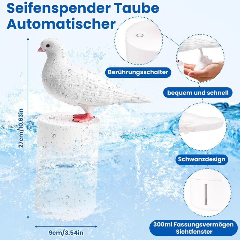 Soap Dispenser Dove Automatic for Worktop, Soap Dispenser Dove, 300 ml White Pigeon Soap Dispenser, Soap Dispenser Dove Poops Funny for Kitchen Sink and Bathroom, The Foam is Thick