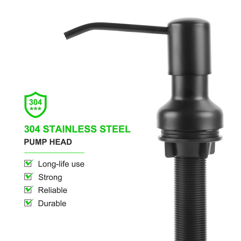 - Premium Material:This sink soap dispenser for kitchen sink is made of durable 304 stainless steel and PE plastic. This soap dispenser pump head possesses long-lasting performance and can survive over 50,000 press tests. Not only waterproof, and is perfect for damp environments.