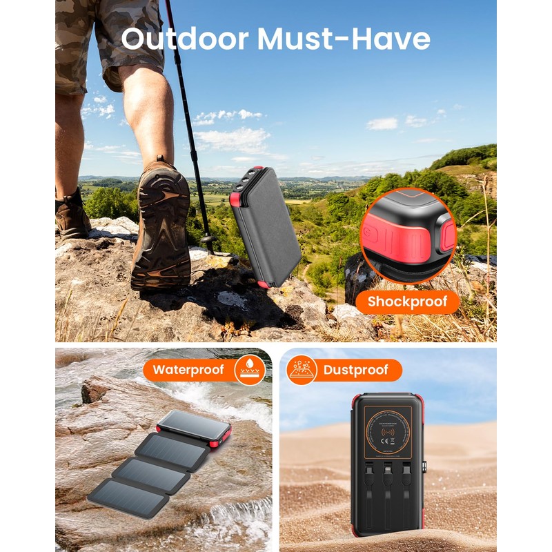 • 【PD 20W Fast Charging】Equipped with the advanced PD QC3.0 high-capacity fast charge technologies, boost an iPhone 16 from 0 to 70% in just 30 minutes. 3X quicker than a regular solar charger, our 20w solar power bank charge is faster, smarter, and safer.