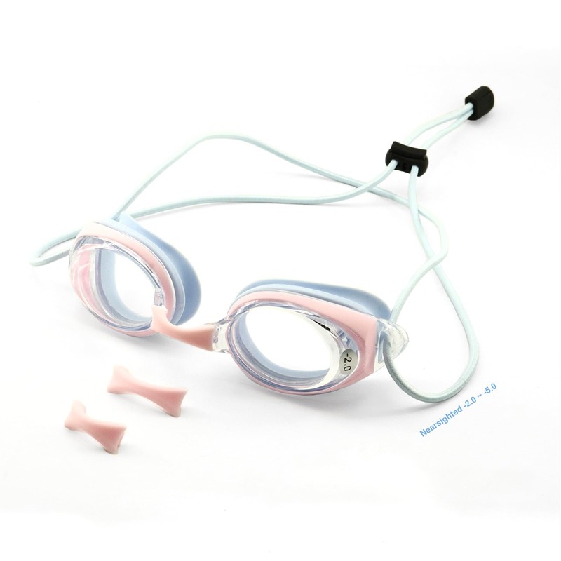 [Soarea] Myopia Swimming Goggles for Kids/Adults, Prescription Swim Goggles, Anti-Fog, UV Protection, Adjustable Swim Goggles, Myopia, Girls, Boys, Leak Proof, Unisex, -2.0-5.0 (Light Blue, -3.5)