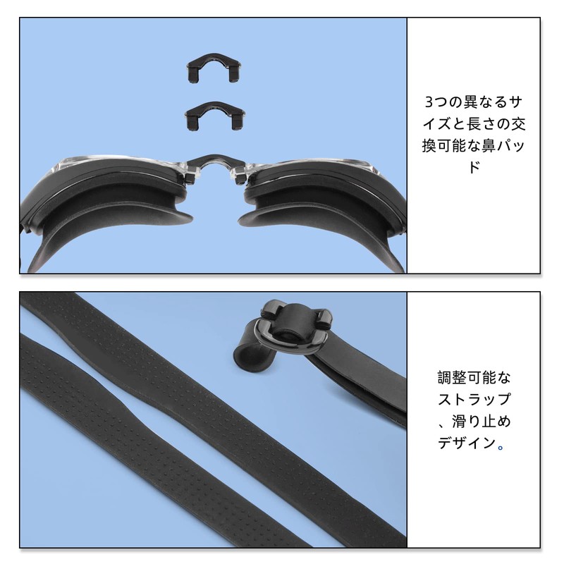 [Soarea] Myopia Swimming Goggles, Prescription Lenses, UV Protection, Anti-Fog, Water Leak Prevention, Competitive Swimming, Goggles, Ear Plugs Included, Adjustable, Swimming, Goggles, Myopia -2.0 to