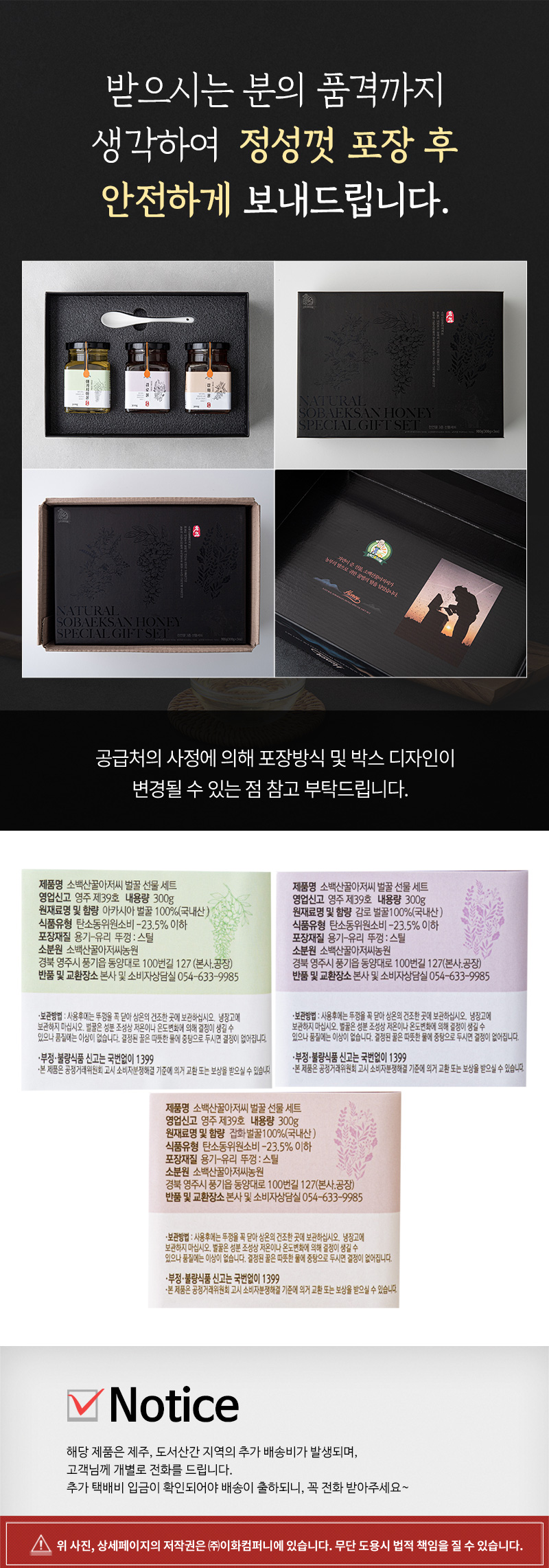 소백산꿀아저씨국내산 벌꿀 3종 선물세트