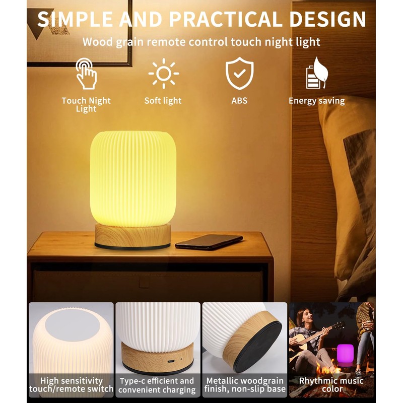 - Simple and fashionable design: the overall appearance of the LED bedside lamp adopts a simple white design and a wood grain design of the base, the top adopts a touch switch design, high sensitivity brings you the ultimate experience; the base adopts a metal wood grain baking varnish design with non-slip base, durable and easy to carry, very suitable for camping, party and breastfeeding