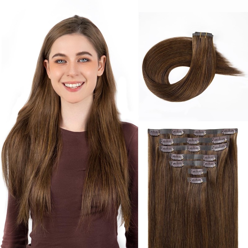 SOBEAUTY Real Human Clip in Hair Extensions with PU-Tape