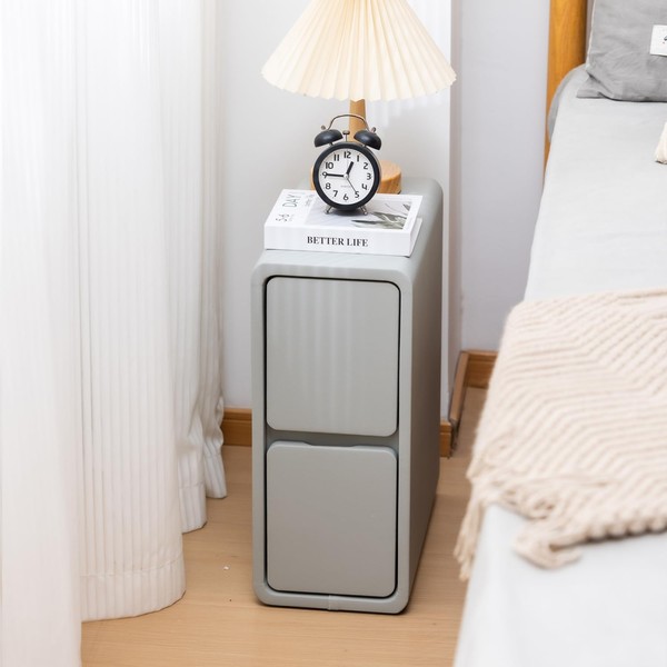 SOBIBO Narrow Nightstand, Solid Wood Night Stand for Small Spaces, Couch, Gray Color 7.87in Wide