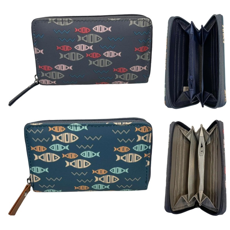 SoBo LEATHER Ladies Purse, Medium Size Purses Featuring Fishes, Zipped with Coin and Card Slots (Blue)