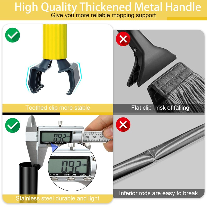 - 【Anti-slip & Anti-rust 】The commercial mop stick is crafted with rustproof steel for easy to maintenance! The thickened design has strong compressive resistance. Foam handle design makes cleaning more comfortable.