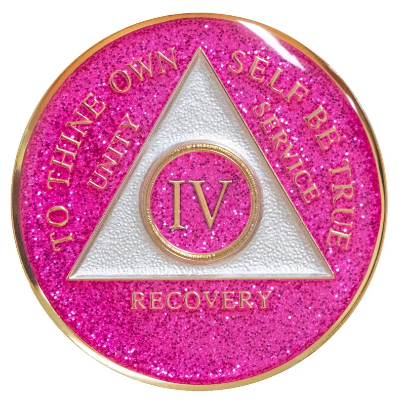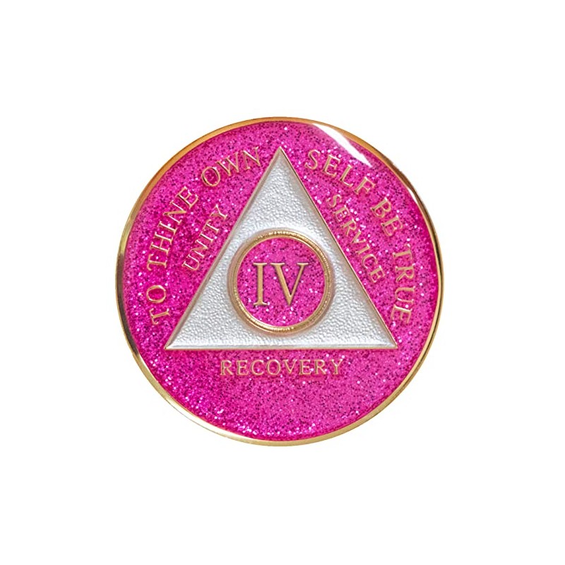Sobriety Chip AA Pink Glitter Triplate (4 Year)