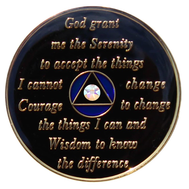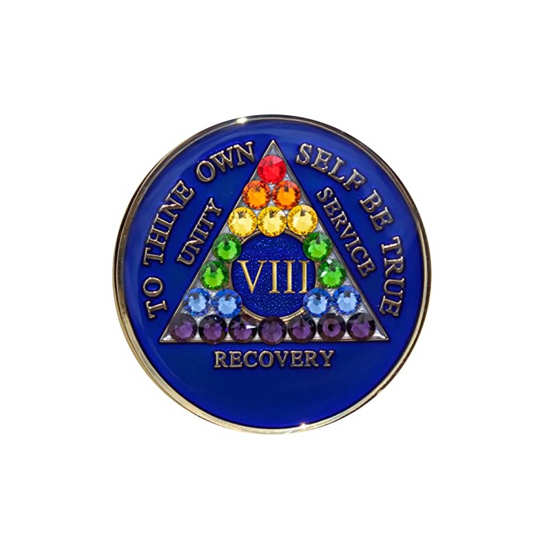 Sobriety Chip AA Rainbow Bling Crystallized Blue Triplate (8 Year)