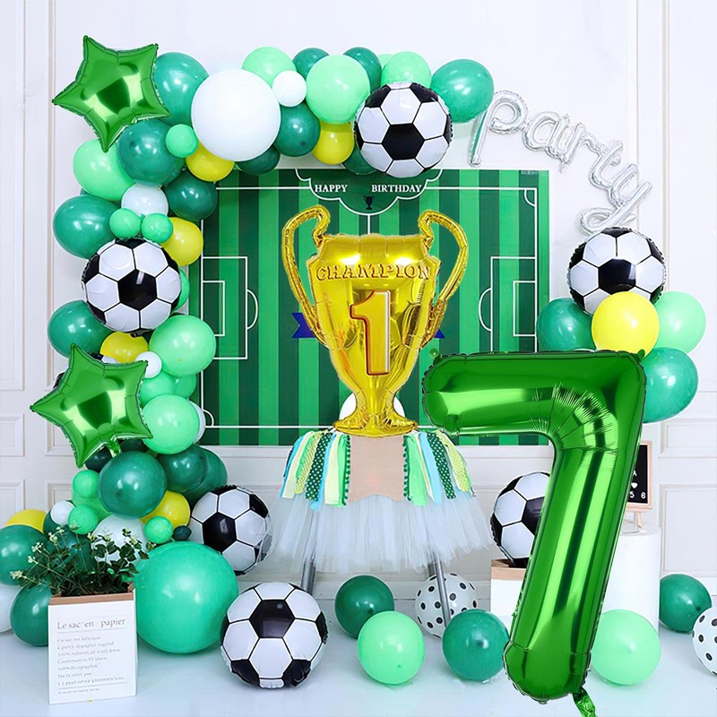 - Package: 1pc 40 inch green number balloon,1pc golden champions trophy balloon,2pcs green soccer foil balloons, 2pcs star green foil balloons.