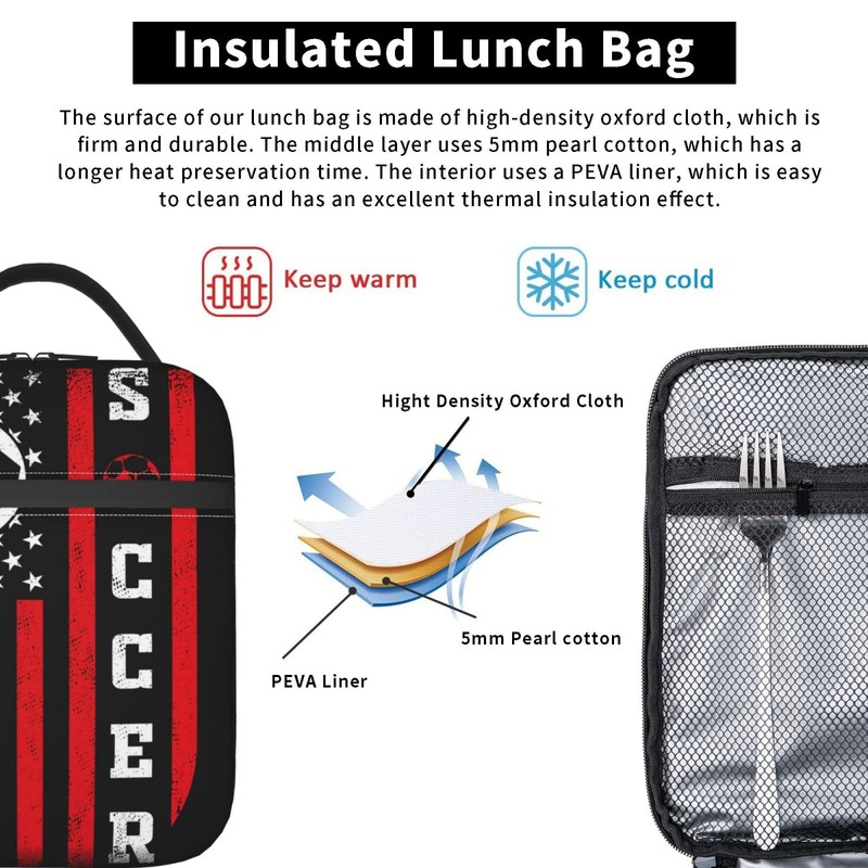 Soccer Insulated Lunch Bag - Portable Lunch Box For Women/Men/Girls/Boys Detachable Handle Lunchbag Meal Tote Bag