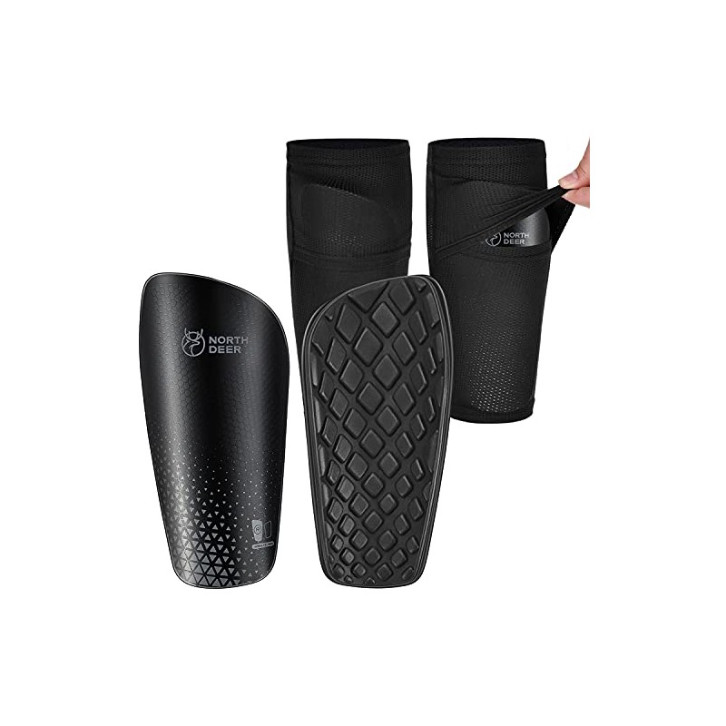 - SHIN GUARDS WITH OPTIMIZED INSERT POCKET - NO MORE SLIPPING OUT: Did you have a situation where the shin guards slipped out during a game? This is a common problem with shin guards, but now we find a new solution. The included sleeves not only have a slide-in compartment for the shin guards to go into, but also have an extra "lid" on top so that help the shin guards stay in place and don't fall out the top.