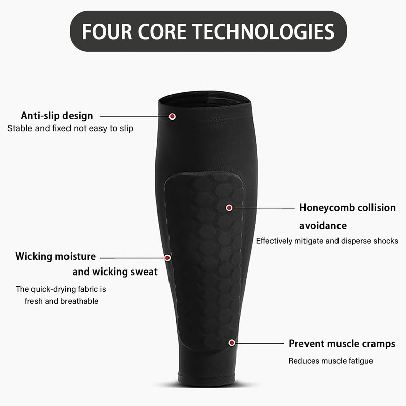Provide comprehensive protection for your sports activities with our calf compression sleeves featuring honeycomb pads, designed for various sports such as football and basketball. Our shin guards not only effectively support the shins and alleviate discomfort from physical activity but also offer exceptional protective performance, suitable for children, teenagers, and adults.
