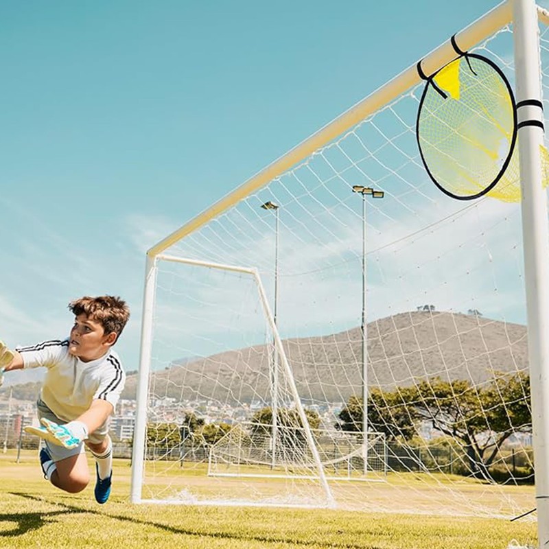 Enhance your accuracy and skills with this user-friendly football net that conveniently fits inside a standard soccer goal. The net attaches to the four corners of the goal, ensuring clear visibility of scores when hitting the target. Ideal for players of all levels looking to improve kicking and passing abilities.