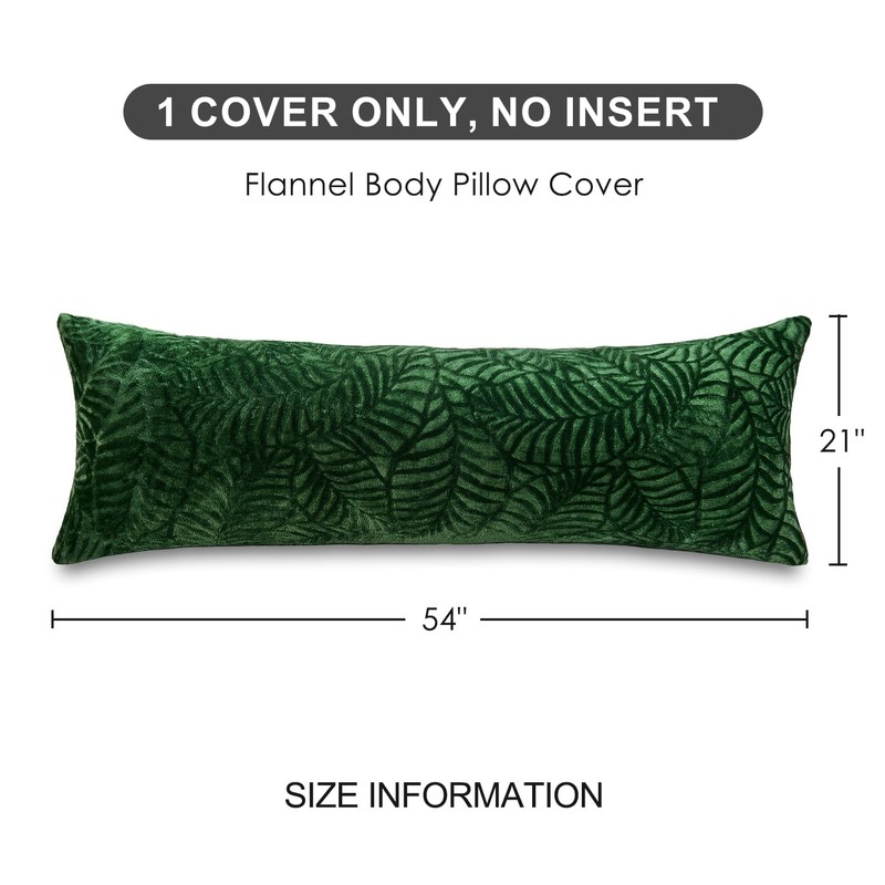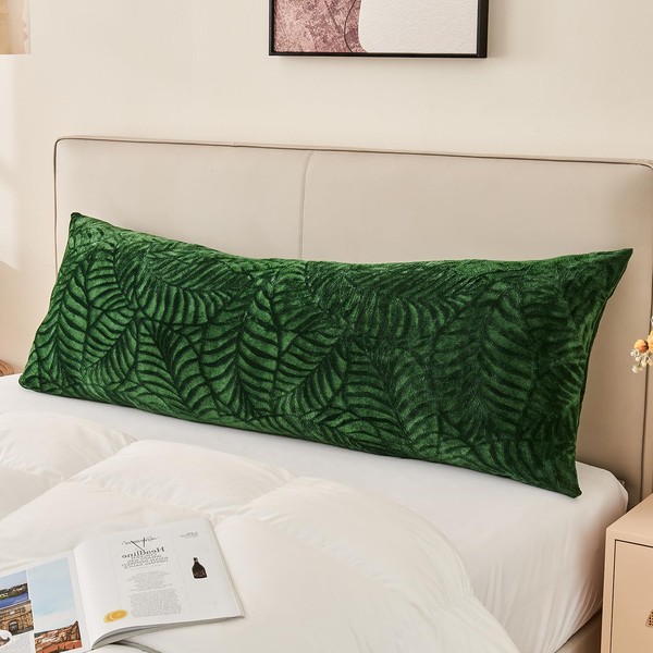 SOCHOW Body Pillow Cover 21x54 Inches, Super Soft and Cozy Leaves Textured Fleece Long Body Pillowcase with Zipper Closure,1 Pack, Olive Green