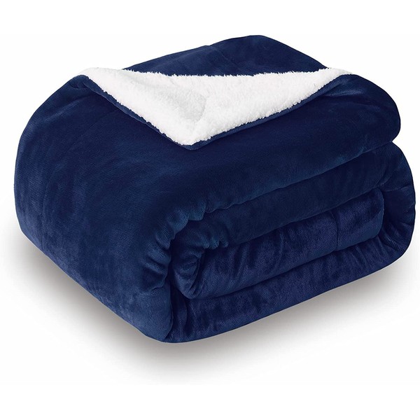SOCHOW Sherpa Fleece Throw Blanket, Double-Sided Super Soft Luxurious Plush Blanket Twin Size, Navy Blue(60/inch X80/'')