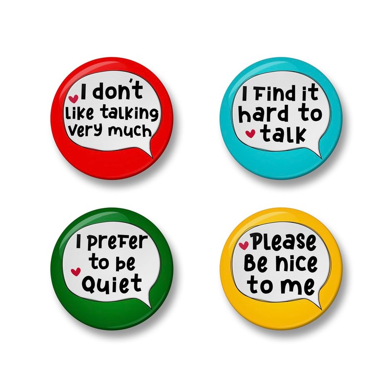 Social Anxiety Badge Set, 4Pcs, 32mm or 44mm Pin Badge Button (32mm)