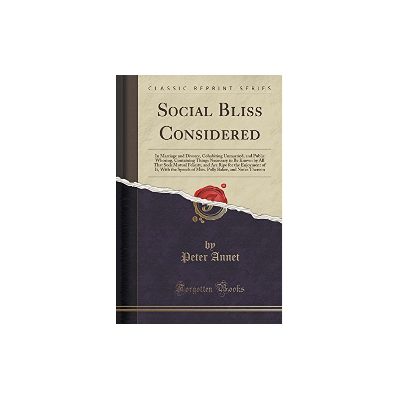 Social Bliss Considered: In Marriage and Divorce, Cohabiting Unmarried, and Public Whoring, Containing Things Necessary to Be Known by All That Seek ... Speech of Miss. Polly Baker, and Notes The by Peter Annet