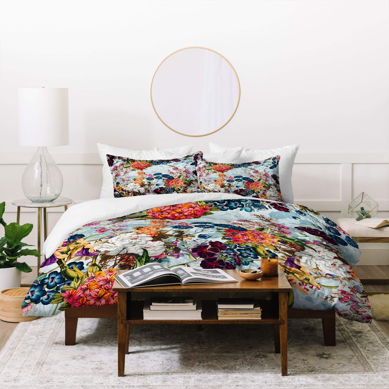 Society6 Burcu Korkmazyurek Summer Botanical Garden VIII King Duvet Cover and 2 Pillow Shams Set, Multi
