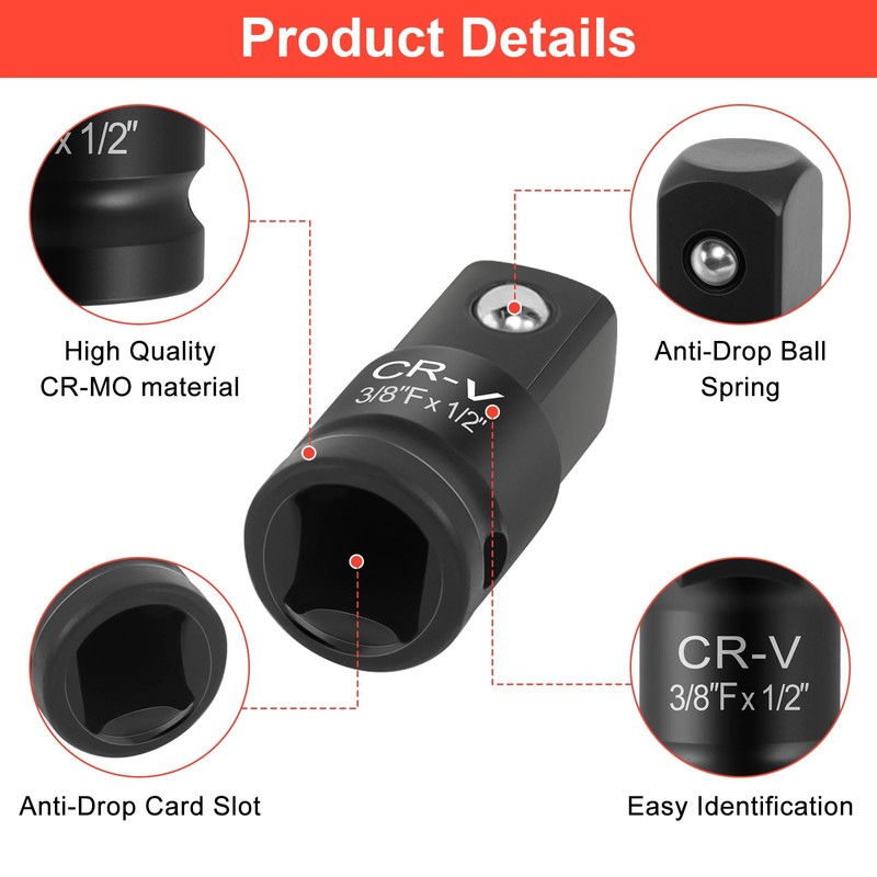 - Various models: complete models, the different models can be converted into each other. 1/4 to 3/8, 3/8 to 1/4, 1/2 to 3/8, 3/8 to 1/2.1/2 to 3/4.3/4 to 1/2.