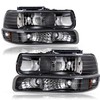 SOCKIR Headlight Assembly Compatible with 1999-2002 Chevy Silverado / 2000-2006 Chevy Tahoe Suburban Replacement with Bumper Lights 4pcs, Black Housing with Amber Reflector