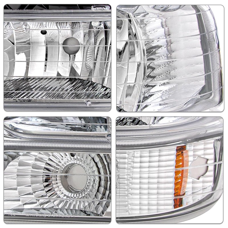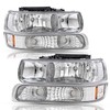SOCKIR Headlight Assembly Compatible with 1999-2002 Chevy Silverado 2000-2006 Tahoe Suburban Replacement with Bumper Lights 4pcs Chrome Housing with Amber Reflector