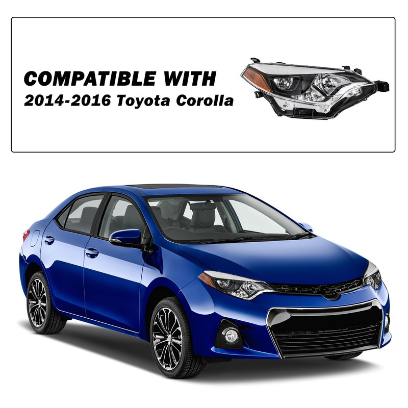 - 【FITMENT】Headlights Assembly Compatible With 2014 2015 2016 Toyota Corolla Base/CE/C/LE Eco/LE/L/S Plus/S/Special Edition Sedan 4-Door.High Beam: 9005(Included),Low Beam: LED(Included).OEM Part number: 8115002E60 TO2502216,8115002E70 TO2503216