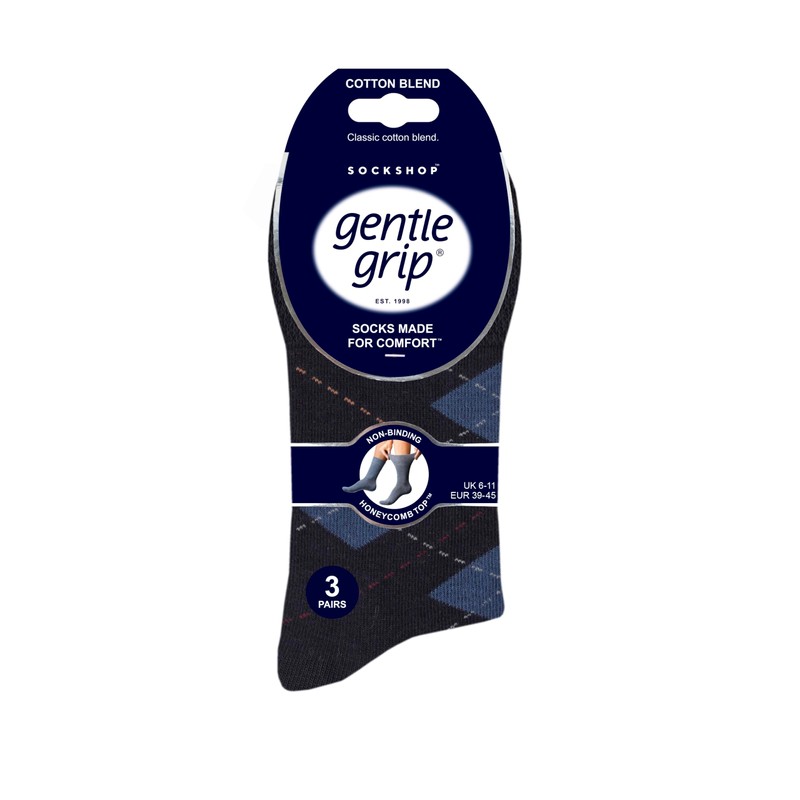 SockShop Gentle Grip Mens Soft Comfy Honeycomb Top Argyle Patterned Striped Cotton Socks Pack of 3 Size 6-11 (UK, Numeric, 6, 11, Regular, Regular, Argyle Bold/Repeat/Navy)