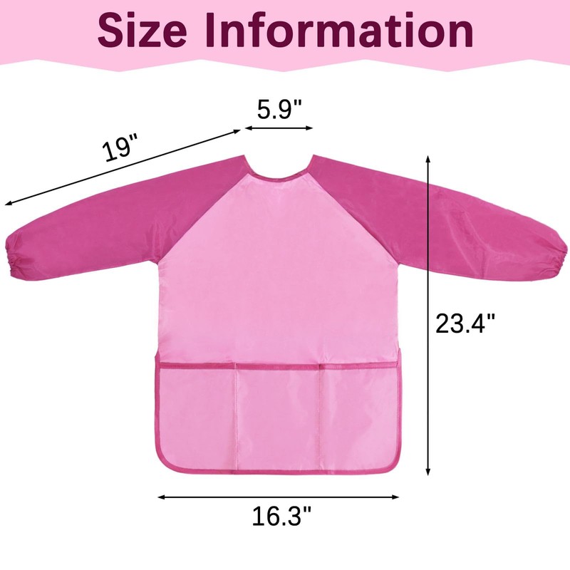 - Fit Size -- Our kids painting smock measures 23.4 x 16.3 inches with full sleeve design, providing enough space for kids from 2 to 6 years old. Suitable for children with a height of 120cm.