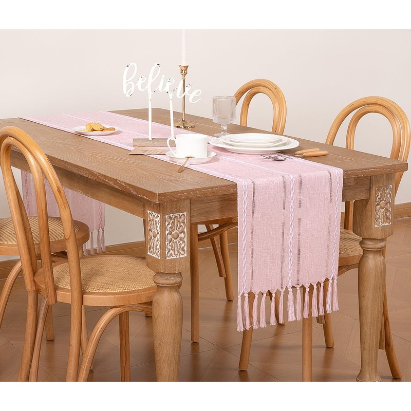 - Macrame Style: These boho runners are designed with textured woven fabric and handmade macrame fringed edges, adding a boho and rustic look to your decor.
