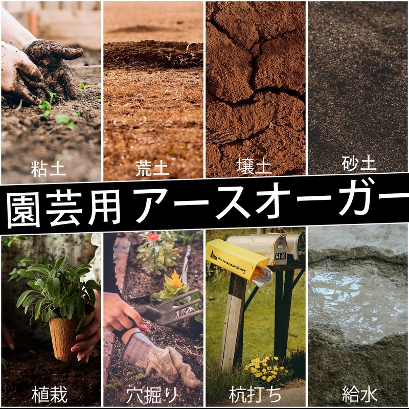 - (Steel Construction) The entire earth drill is made of steel. The surface is plated to prevent rust and can be used for a long time. Made of steel for high hardness. Useful for drilling rough soil, sand, and clay. Cannot be used on extremely hard ground, ground with stones or concrete ground