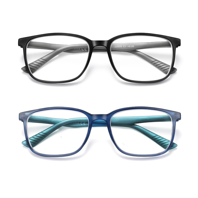SOCTICK 2 Pack Blue Light Blocking Reading Glasses Men,Anti Eyestrain Lens Lightweight Frame Eyeglasses, Large Wide Readers for Men(+2.0)