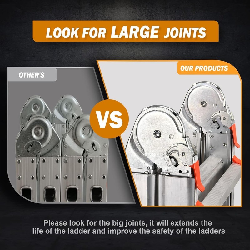 - Safety of Use: The high quality construction of the Muti-Position ladder ensures that each part retracts safely. Safety Protection Hinge Lock and Solid J Lock hold the parts in place and prevent sliding, and the ladder will retract smoothly and slowly.