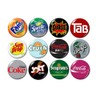 - You will receive ALL 12 of the soda logo buttons pictured