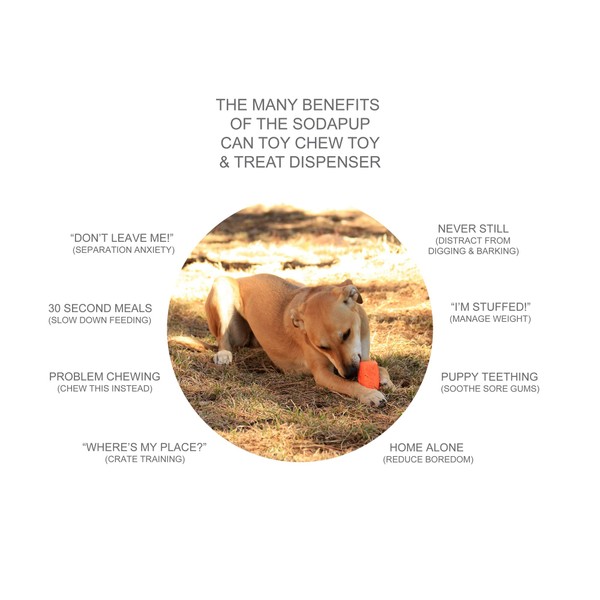 Soda Pup Dog Chew Toy and Treat Dispenser - Enrichment Dog Toys - Treat Dispensing Dog Toys - Dog Puzzle Toys - Dog Treat Toy - Orange - X-Large