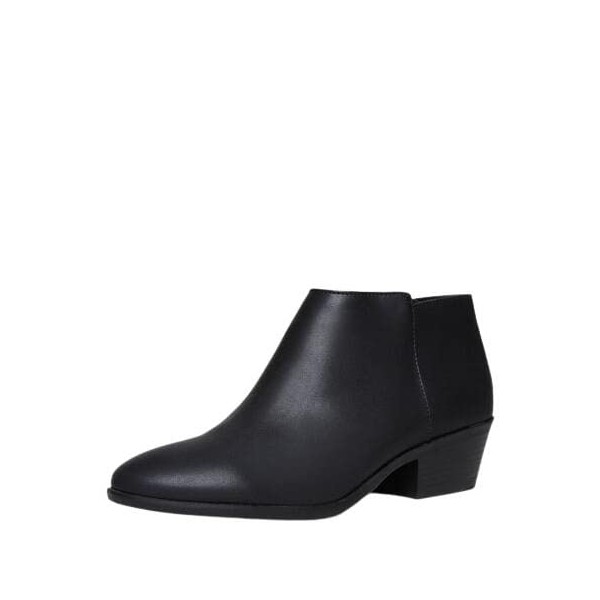 - Women's low ankle booties with chunky stacked heel, closed round toe and side zipper. Stylish yet comfortable block heel is measured 3 inches tall.
