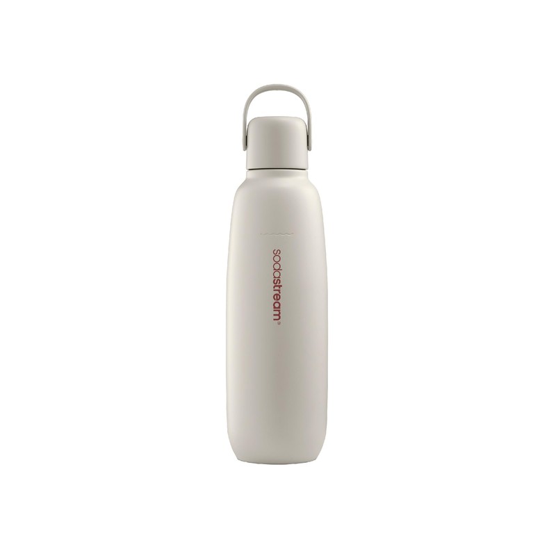 SodaStream - Fizz&GO Sand Double Walled Stainless Steel Bottle | Keeps Drinks Cold & Bubbly for 12 Hours | Compatible with SodaStream Quick Connect Machines | Easy-Carry Handle, 900ML