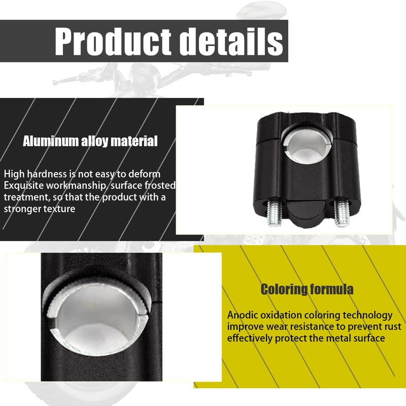 - 🚘 Alloy Material: This handlebar clamp is made of high-quality metal alloy material, which is strong and durable, has high processing precision, exquisite craftsmanship, and frosted surface treatment, giving it a strong texture. Unique coloring technology improves wear resistance, prevents rust, and effectively protects metal surfaces.