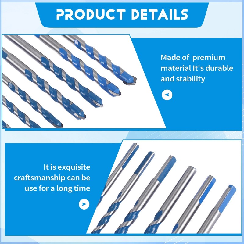 Wide Application: Great for most materials in interior fitting work, metal, glass, ceramic tiles, wood, ceramics, stone, concrete, bricks, etc. (When drilling hard material, please use water for lubrication)