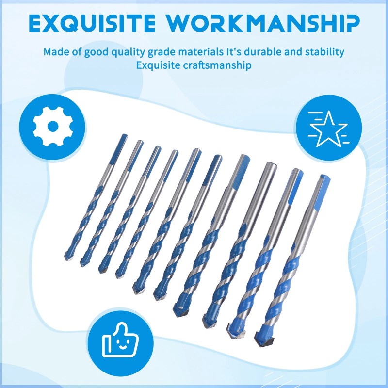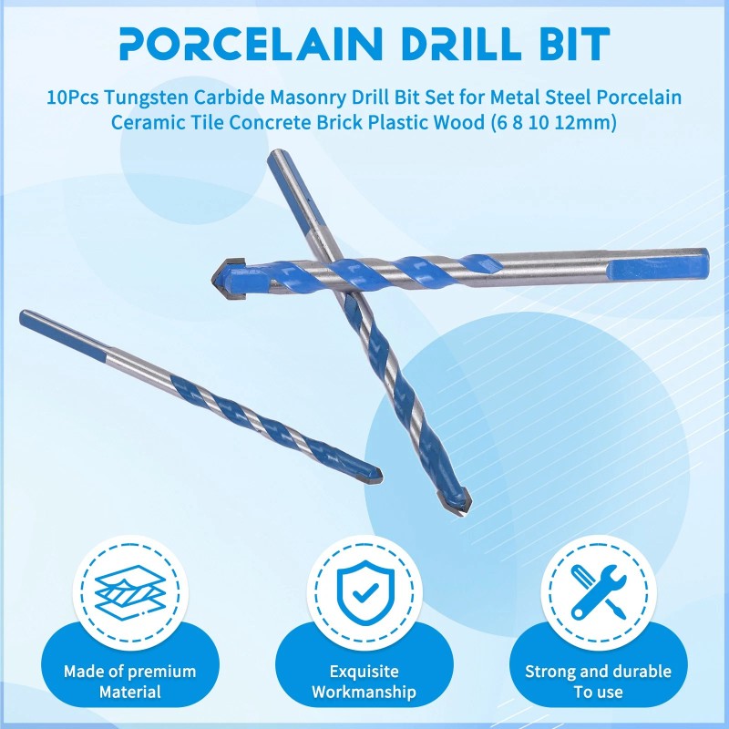 SODIAL 10Pcs Tungsten Carbide Masonry Drill Bit Set for Metal Steel Porcelain1344